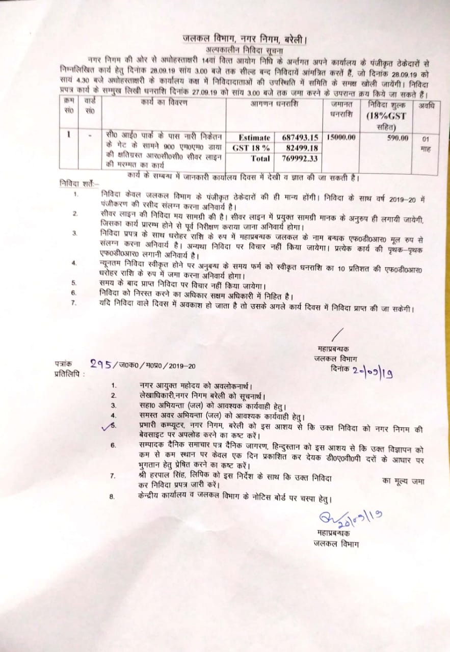 | 9. | 26-09-2024 | Re-Tender notice for selection of chartered accountant for maintenance of accounts of Bareilly Nagar Nigam and operation of works under double accounting system | Download |